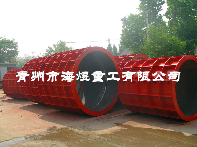 1800×2000水泥管模具外筋板設(shè)計(jì)布局合理,焊接牢固;跑圈采用高碳鋼鑄造,經(jīng)車(chē)床加工,尺寸精準(zhǔn),制管時(shí)采用C30干硬性混凝土,水灰比為0.3~0.36,生產(chǎn)1根直徑1800mm的鋼筋混凝土管只需要20分鐘,生產(chǎn)效率高,外觀質(zhì)量好。