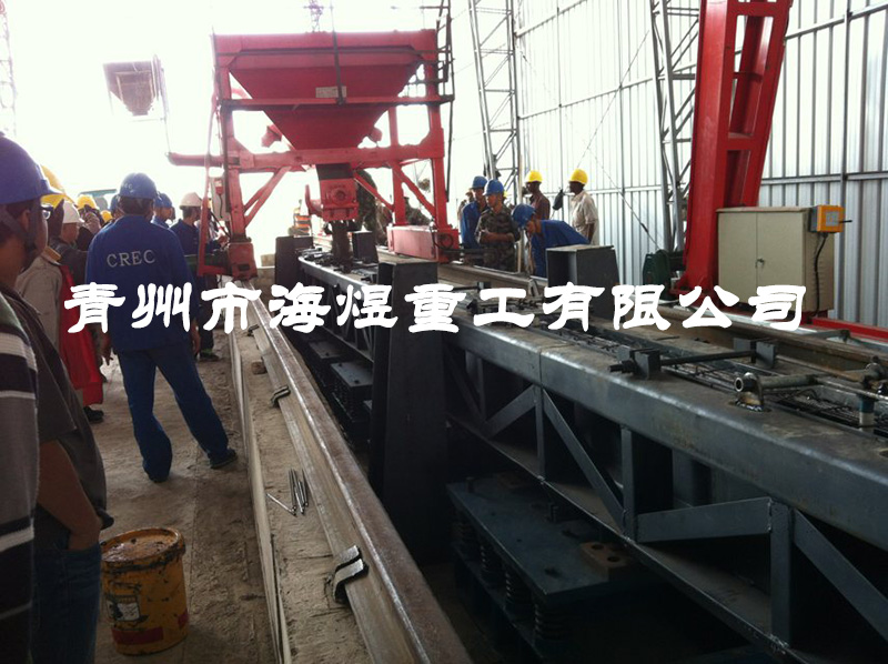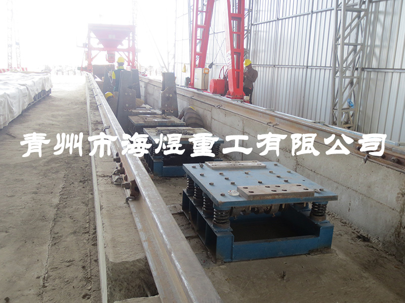 接觸網(wǎng)支柱振動臺取消了臺架,彈簧與激振器組成支柱,支柱上裝有卡模裝置,模底有相同振幅的振源,克服了模底各點(diǎn)振幅差大的缺點(diǎn),重量輕,降低了動力消耗。混凝土表面不吸空氣,振動橫向(水平)傳遞,氣泡易排出,制成的混凝土構(gòu)件質(zhì)量好。