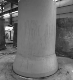 (1)主要原因:所購(gòu)置芯模振動(dòng)設(shè)備在生產(chǎn)(Φ1000~Φ1200)mm×2500mm承插口管時(shí),承插口凸出段在脫模后易出現(xiàn)管體塌落現(xiàn)象,主要原因是這種管型所用骨架為單層骨架,承口段成型后混凝土用量過(guò)多、鋼筋少、結(jié)構(gòu)尺寸突變導(dǎo)致混凝土因自重過(guò)大而塌落。 (2)改進(jìn)措施:①對(duì)小口徑承插管所用骨架的承插段采用雙層骨架,適當(dāng)增加承插段骨架鋼筋與混凝土物料的接觸面積,從而提高該處鋼筋與混凝土的結(jié)合力;②脫內(nèi)、外模時(shí),必須保證行車(chē)吊具的垂直中心線與模具的垂直中心線重合。 (3)改進(jìn)效果:通過(guò)對(duì)小口徑承插管承口段骨架加強(qiáng)處理,在隨后的小口徑承插管生產(chǎn)、成型脫模后再未出現(xiàn)承口段混凝土塌落的現(xiàn)象;同時(shí)通過(guò)及時(shí)對(duì)承口段凸出部分外表面進(jìn)行抹面修飾,使得小口徑承插管外觀質(zhì)量非常完美(見(jiàn)圖3)。 ![]() 圖3 改進(jìn)后小口徑承插管外觀情況