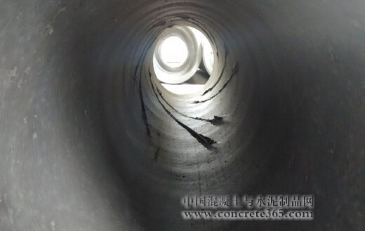 (6)合理調(diào)整限位開關的位置,滿足生產(chǎn)需要。 (7)及時檢查動力頭的轉(zhuǎn)動情況,減少動力頭磨損。 (8)根據(jù)產(chǎn)品尺寸調(diào)整喂料盤限位開關高度。限位開關高會造成插口尺寸不準和氣動力不足;限位開關低會使定位盤受力過大,長時間會發(fā)生變形。 (9)調(diào)整模具底部螺栓的高度,防止由于模具高度不一致對承口振動效果造成影響。 在設備控制方面需要注意的事項還有很多,在此僅列舉部分容易忽視且對產(chǎn)品質(zhì)量影響較大的因素。 2、材料控制 材料的控制主要是指材料的選擇和配合比的設計。 立式徑向擠壓用混凝土與普通混凝土 相比有許多不同的特點。因此,需要根據(jù)制品及其工藝特點選擇其配合比。 在通常的混凝土配比設計中,達到設計強度很容易,但要配制出滿足工藝特點、保證產(chǎn)品標準質(zhì)量,同時還要兼顧成本等綜合性能卻是很難做到的。因此,需要結(jié)合徑向擠壓的工藝特點進行特殊配合比的設計。 (1)材料選型 ①水泥 徑向擠壓為立式生產(chǎn)、產(chǎn)品管徑小、高度大,受自身重力作用而發(fā)生沉降明顯,且擠壓成型脫模后,由于鋼筋內(nèi)力回彈使管身發(fā)生轉(zhuǎn)動,容易產(chǎn)生裂縫。因此,在水泥的選擇上除了滿足GB175的技術要求外,還應盡量選擇穩(wěn)定性好,質(zhì)量均勻,凝結(jié)時間快,粘聚性大的產(chǎn)品。 ②砂 盡量選用2.3~3.0的中砂,條件允許的情況下可以摻加一部分的細砂,以保證水泥砂漿可以盡量充分的填充石子之間的空隙。砂的質(zhì)量嚴格按照建筑用砂標準執(zhí)行。 在保證強度的前提下可以適當提高砂率,達到密實度更好的效果。最大砂率可控制在45左右%。 ③石 此種工藝主要是由喂料機不斷的喂料,通過擠壓頭不斷的向模具四周擠壓,修整頭研磨成型且管壁較薄。對滾輪磨損極大,極易造成變形和損壞。同時,由于滾輪的變形會造成布料不均,使管壁發(fā)生偏心。因此,粗骨料的粒徑宜小不宜大,一般選用5~10mm或5~16mm 的連續(xù)級配。 在粗骨料的幾何尺寸選擇上也需特別注意。卵石對設備的磨損影響較小,且有利于砂漿的填充,但是與混凝土的粘結(jié)咬合力較差;碎石與混凝土的粘結(jié)咬合力強,但是對設備的磨損大。針對這種情況,應采用卵石與碎石結(jié)合使用的方法較好。 ④摻合料 添加摻合料的主要目的是在保證產(chǎn)品強度及外觀質(zhì)量的情況下減少水泥用量,降低施工成本。摻合料質(zhì)量及摻合量只要滿足國家相關標準即可,在此不贅述。 ⑤鋼筋 鋼筋在原材選擇和制作上要滿足相關的圖集及標準。 根據(jù)徑向擠壓管的成型特點,其對鋼筋籠質(zhì)量的要求極高,甚至可以說此工藝成型的成敗的關鍵在鋼筋骨架。下面以采用單層鋼筋骨架制管為例簡述鋼筋骨架質(zhì)量的重要性。 首先、鋼筋骨架的焊接質(zhì)量必須保證。由于在采用徑向擠壓制管過程中存在巨大的扭力作用。一旦骨架某個點開焊,極易發(fā)生連鎖效應,造成骨架扭曲、扭壞或散架。 其次、鋼筋骨架的垂直度必須保證。目前,鋼筋骨架的焊接大多采用滾焊機完成。通過長時間對比推筋和拉筋兩種焊接工藝,認為采用拉筋的形式所制作的鋼筋骨架垂直度較好,縱筋不會發(fā)生扭曲現(xiàn)象。另外,還需經(jīng)常檢查滾焊機相關參數(shù)及易耗品的磨損情況并及時更換。 第三、嚴格控制鋼筋骨架的尺寸。鋼筋骨架的高度,圓度必須經(jīng)過嚴格計算。鋼筋骨架與模具組合并鎖定氣缸后,以稍用力能在模具內(nèi)發(fā)生轉(zhuǎn)動為宜,用以盡量減少在制管過程中產(chǎn)生的內(nèi)力。若鋼筋骨架較大,則容易在承口稍向上部位發(fā)生扭筋現(xiàn)象(如圖3);若鋼筋骨架過小,則氣缸無法對其固定,制管過程中容易發(fā)生骨架下沉或在插口處出現(xiàn)扭筋現(xiàn)象(如圖4)。 第四、嚴格控制鋼筋骨架的高度,以剛好接觸碾壓盤下方為宜。若較長,則容易將骨架壓變形;若較短則保護層無法保證。 ![]() 圖3 ![]() 圖4
