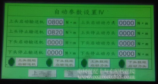 因每個地區(qū)原材的特性及選擇均有所不同(主要指粗細骨料),配比設計也不同。但不管怎樣都必須先經(jīng)過適配并作出調(diào)整,合格后才能正式用于生產(chǎn)。 根據(jù)我公司經(jīng)驗,水灰比W/C=0.32~0.38;砂率45%左右;摻合料不超過30%;維勃稠度不超過50S。 徑向擠壓用混凝土宜稍偏濕,切勿偏干,手攥成型不松散。 有關因混凝土配比而造成產(chǎn)品不合格的幾種現(xiàn)象及解決辦法將在下一部分中提到。 3、操作數(shù)據(jù)控制 現(xiàn)在立式徑向擠壓制管設備雖然實現(xiàn)了自動化控制,大大減少了因為手動操作所造成的失誤。但是產(chǎn)品的質(zhì)量絕不僅僅是一方面的因素,它是一個綜合的,復雜的系統(tǒng)。其中的任何一道工序不符合要求都有可能影響管子的質(zhì)量。 在保證混凝土、鋼筋骨架合格,機械設備正常的情況下,重點就需要掌握相關操作的控制。 在采用徑向擠壓工藝生產(chǎn)出合格產(chǎn)品前,需要進行長時間的各種物理參數(shù)的摸索,且由于混凝土攪拌質(zhì)量的不同、工況的不同、產(chǎn)品型號的不同都會造成對某項或某幾項參數(shù)的影響,需要隨時對其進行正確的修改。相關參數(shù)可以通過控制面板進行設定(如圖5即為其中的一頁界面)。 在面板的各項數(shù)據(jù)中并不是所有的項目都與操作有關,部分參數(shù)廠家已經(jīng)修訂完畢,無需進行更改。 ![]() 圖5