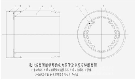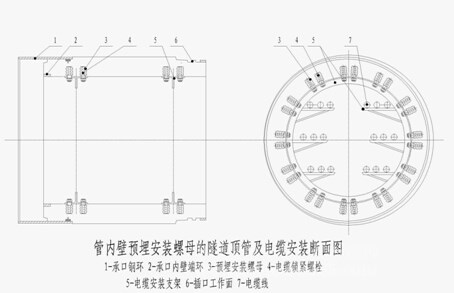 下圖就是預(yù)埋帶孔環(huán)形鋼板的隧道管節(jié)圖和安裝電纜的截面圖。