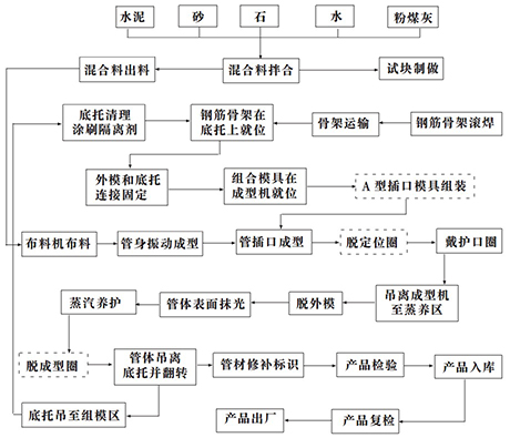 ![]() 圖4 改進前、后芯模振動制管工藝生產(chǎn)A型鋼承口管的流程圖
